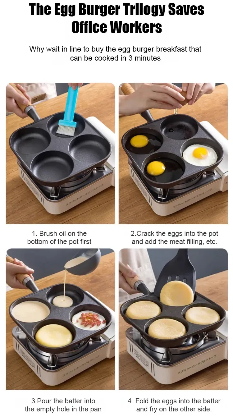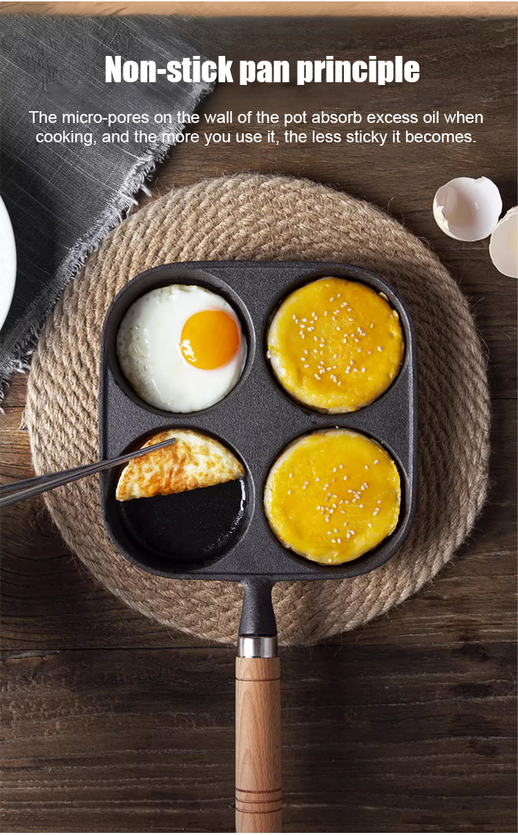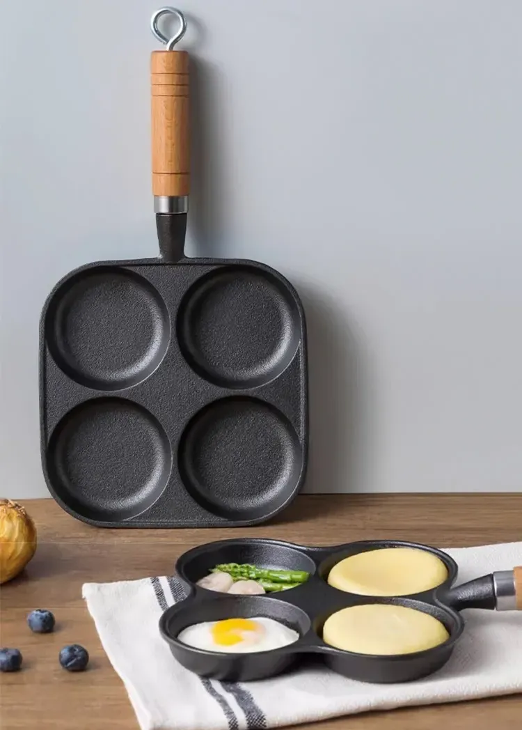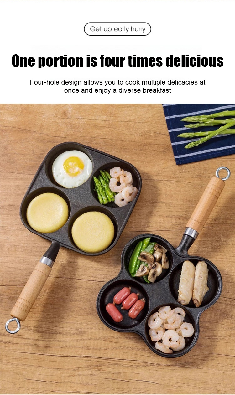 Deeper four-hole cast iron non-stick frying pan